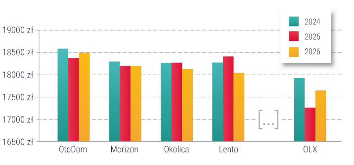 Najtańszym portalem w zestawieniu pozostaje OLX. Co prawda w ostatnim roku średnie ceny ofertowe tam wzrosły, ale mimo to serwis wciąż wyraźnie odstaje od reszty stawki w dół. Można więc powiedzieć, że nawet po podwyżce OLX nadal pozostaje naturalnym miejscem dla tańszych ofert mieszkań.